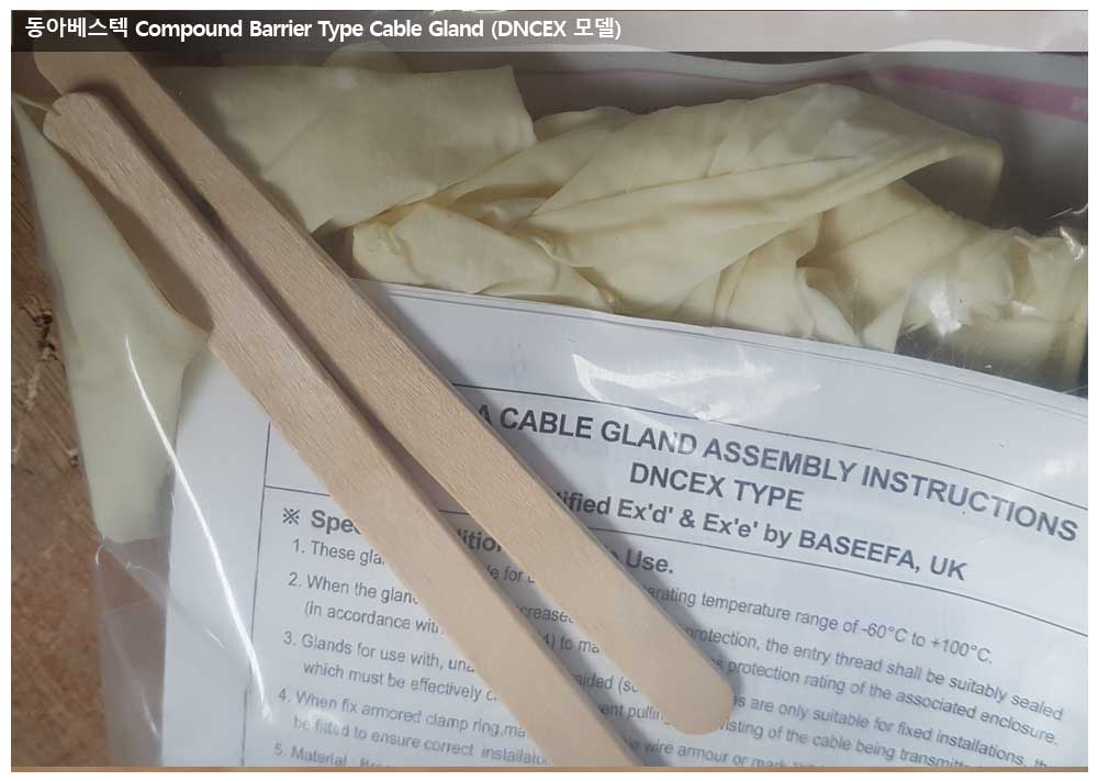 Compound를 사용하는 Cable Gland는 유효기간이 있어 미리 제작된 재고품을 사용하기 곤란합니다.