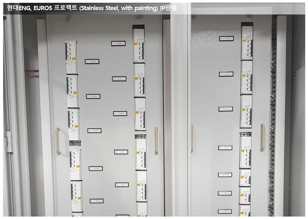 현대ENG, EURO5 프로젝트, IP판넬 페이지 정보 작성자 관리자 작성일19-10-28 13:15 조회19,872회 댓글0건 관련링크 이전글 다음글 목록 본문 공급품목 : IP판넬판넬크기 : 1850*2300*450판넬특징 : Stainless Steel 재질의 판넬에 painting 처리한 판넬입니다. Breaker 독일제품(Schneider)을 사용하였습니다. 댓글목록 등록된 댓글이 없습니다. 이전글 다음글 목록
